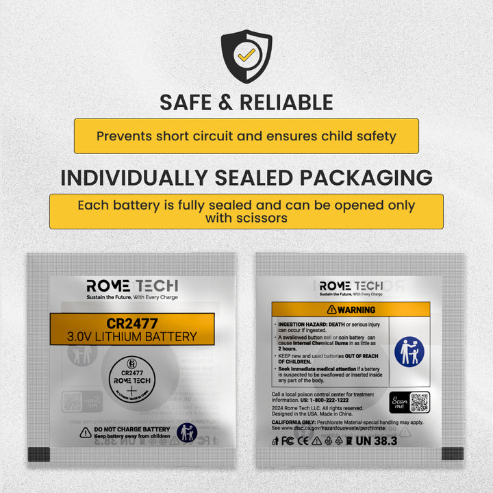 CMOS Coin Cell batteries are the highest-quality lithium-ion batteries on the market. High power ensures efficient operation and long service life of up to 5 years. Compatible with various devices like laptops, portable computers, scanners, tablets, and other industrial or consumer devices that require a backup battery. Quality, efficiency, and reliability are the main principles that guide us in producing our products. All Rome Tech batteries come with MSDS, UN38.3, and other certifications.